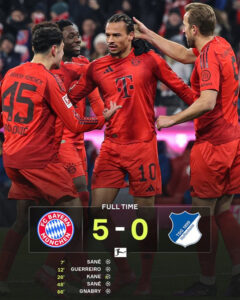 Bàn thắng Bayern vs Hoffenheim Bayern: Sané (7′, 48′), Guerreiro (12′), Kane (26′-pen), Gnabry (66′)...